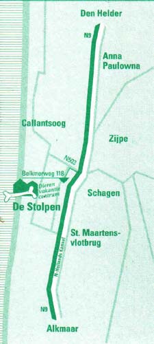 - Vanaf de N9, komend vanuit het noorden (Den Helder), gaat u rechtsaf de (Stolperweg) op, richting Callantsoog. Vervolgens de eerste weg na de verkeersdrempel links. U bevindt zich dan op de Belkmerweg.